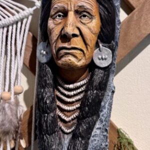 Esculpido em pó de pedra e pintado à mão, este índio representa a força da ancestralidade, a sabedoria dos antepassados e a ligação profunda à…