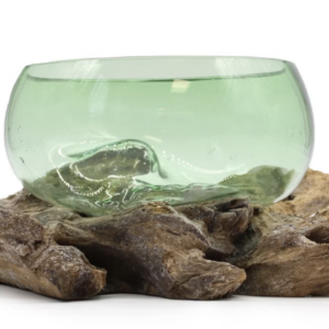 Taça Decorativa em Vidro Verde com Base de Madeira Natural Peça única e cheia de carácter 🌿 Esta taça em vidro verde translúcido assenta sobre…