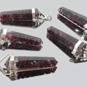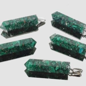Este pingente em forma de ponta de gerador é formado por um chip de malaquita. O acessório deste pingente é prateado. A orgonita é uma…